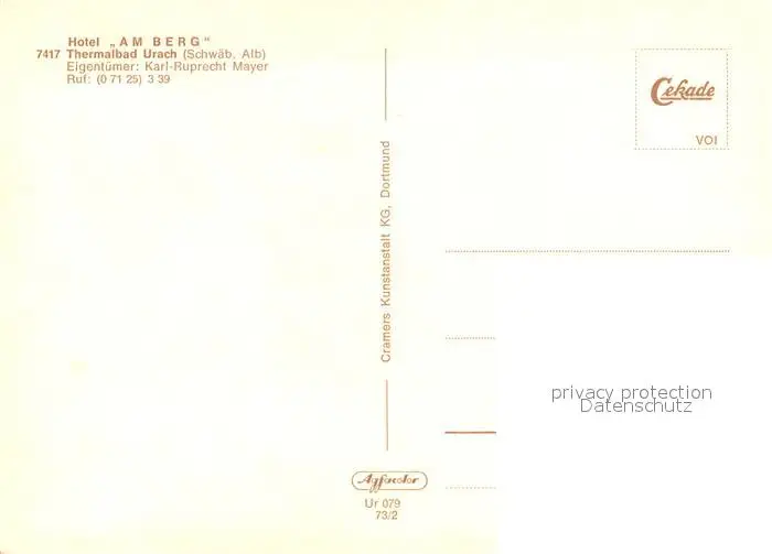 Bad_Urach Hotel Am Berg Bad_Urach postalisch nicht gelaufen nach 1965 Erhaltung siehe scans [WerneD78] WernPID7