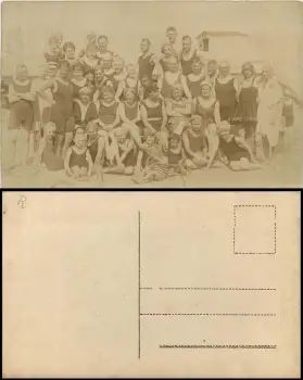 Bademode, Gruppe am Strand, Foto-AK ca. 1930