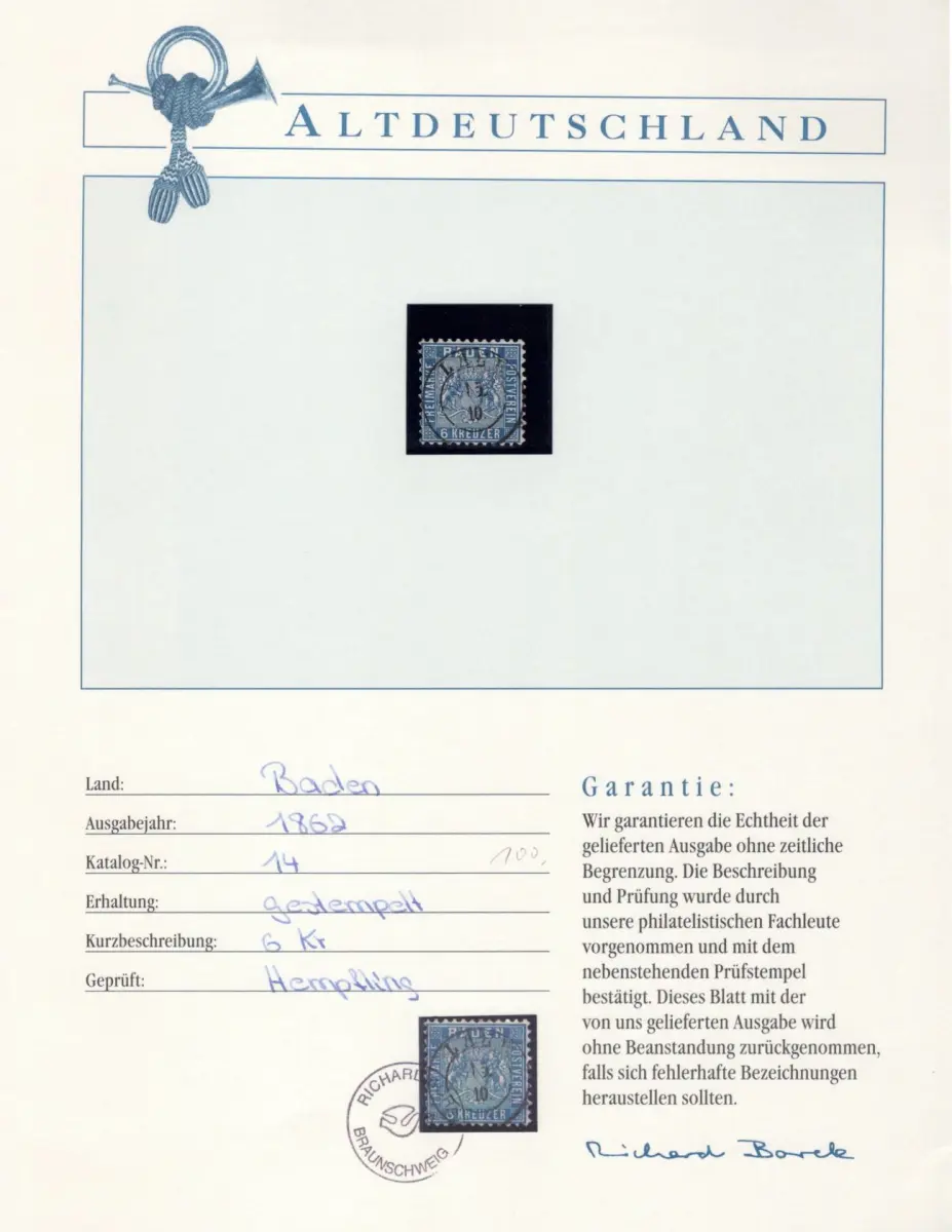 Ein Angebot in Briefmarken Altdeutschland - Baden - 943 weitere Angebote in dieser Kategorie
