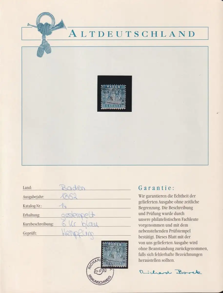 Baden 14 gestempelt mit Borek Garantie #NK503