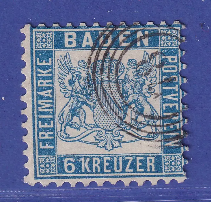 Baden 6 Kr preußischblau Wappen Mi.-Nr. 19 b gestempelt gepr. PFENNINGER