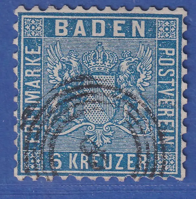 Baden 6 Kreuzer preussischblau Mi.-Nr. 14b gestempelt mit Ring-Nr.-O 8 Baden