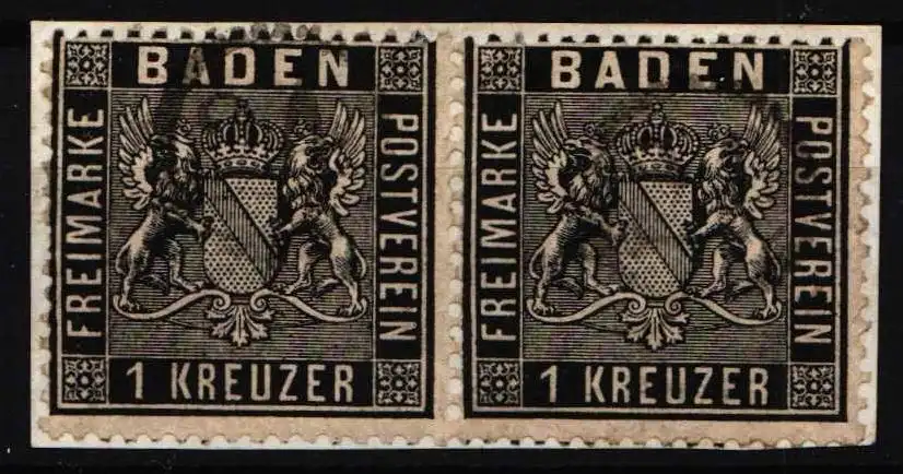 Baden 9 gestempelt waagerechtes Paar auf Briefstück #NR394