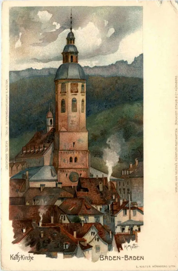 Baden-Baden - Litho Künstlerkarte K. Mutter -256412
