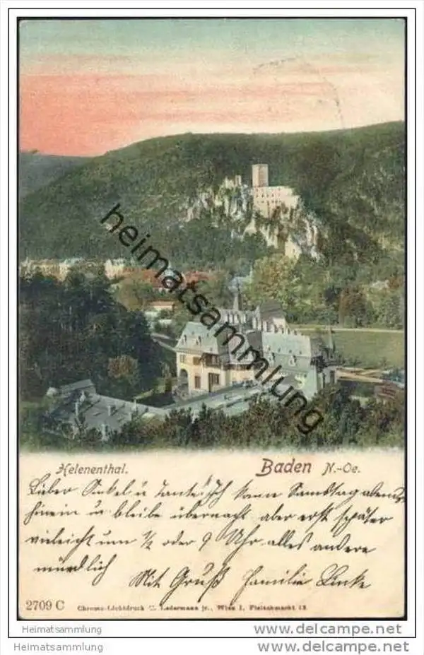 Baden - Helenenthal - Verlag C. Ledermann jr. Wien - Gebrauchsspuren - Marke entfernt (G22101) gel. 1903