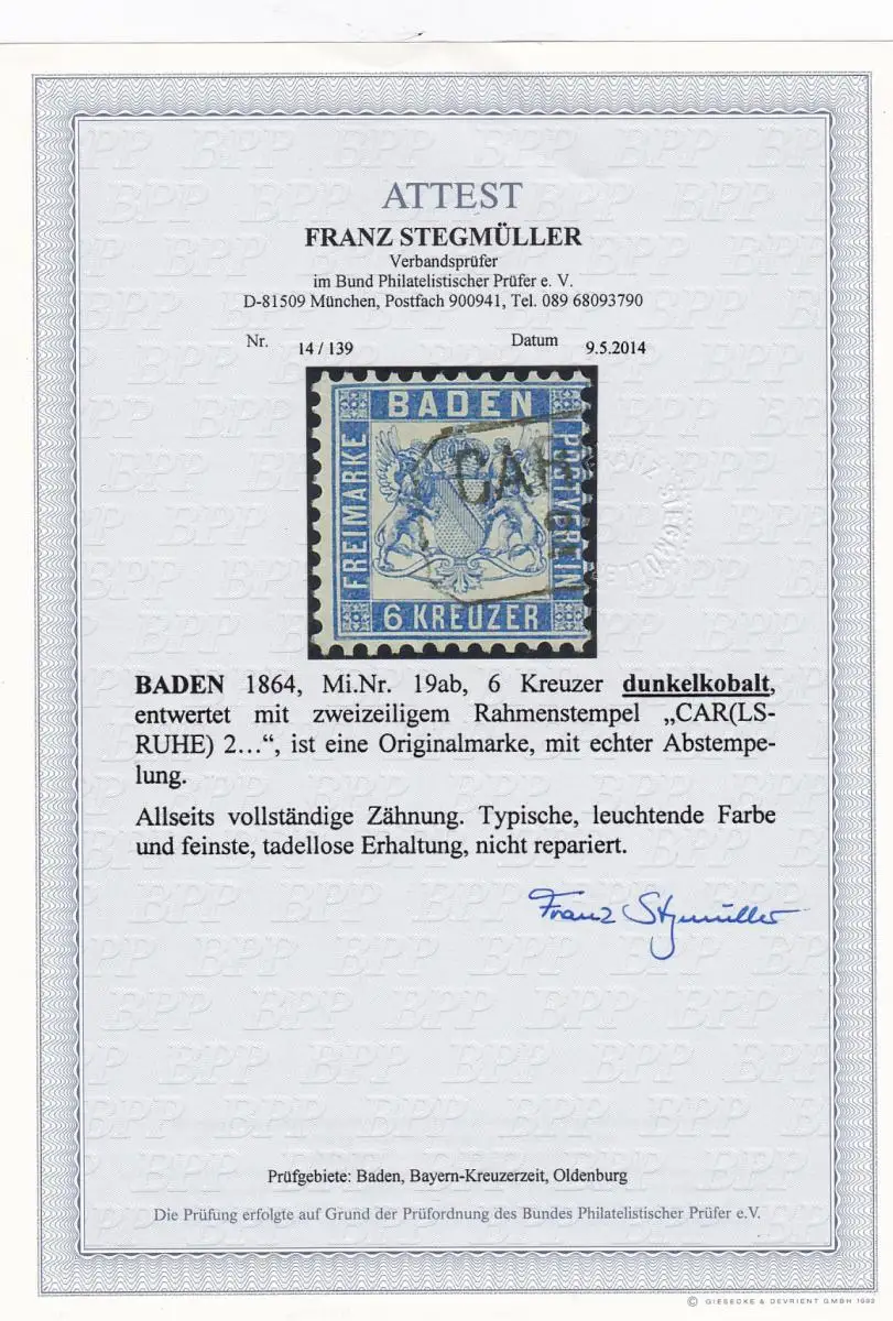 Baden: MiNr. 19 ab, gestempelt, BPP Attest