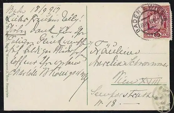 Bemerkungen: Gelaufen: Baden bei Wien - Wien, 1917.