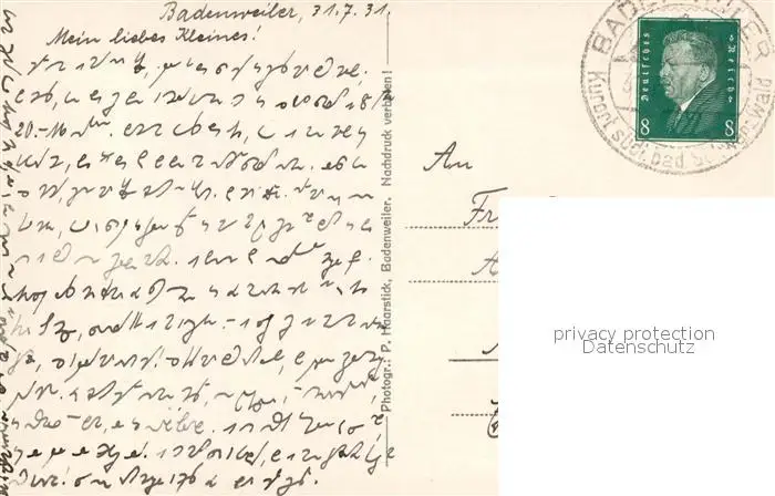 Badenweiler Schloss Hausbaden Badenweiler postalisch gelaufen 1931 Erhaltung siehe scans [WerneD78] WernPID7