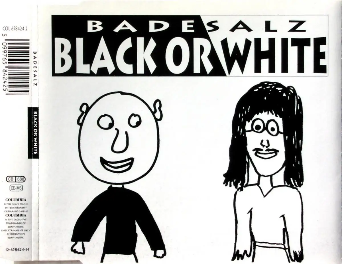 CD Single Badesalz - Black Or White, Michael Jackson coverversion, Zustand CD M- Hülle M-; Made in Austria 1992 Columbia 658424 2, Tracks 3:13, Sorry 1:30, Mallorca 2:03, Die Bestätigung 0:44