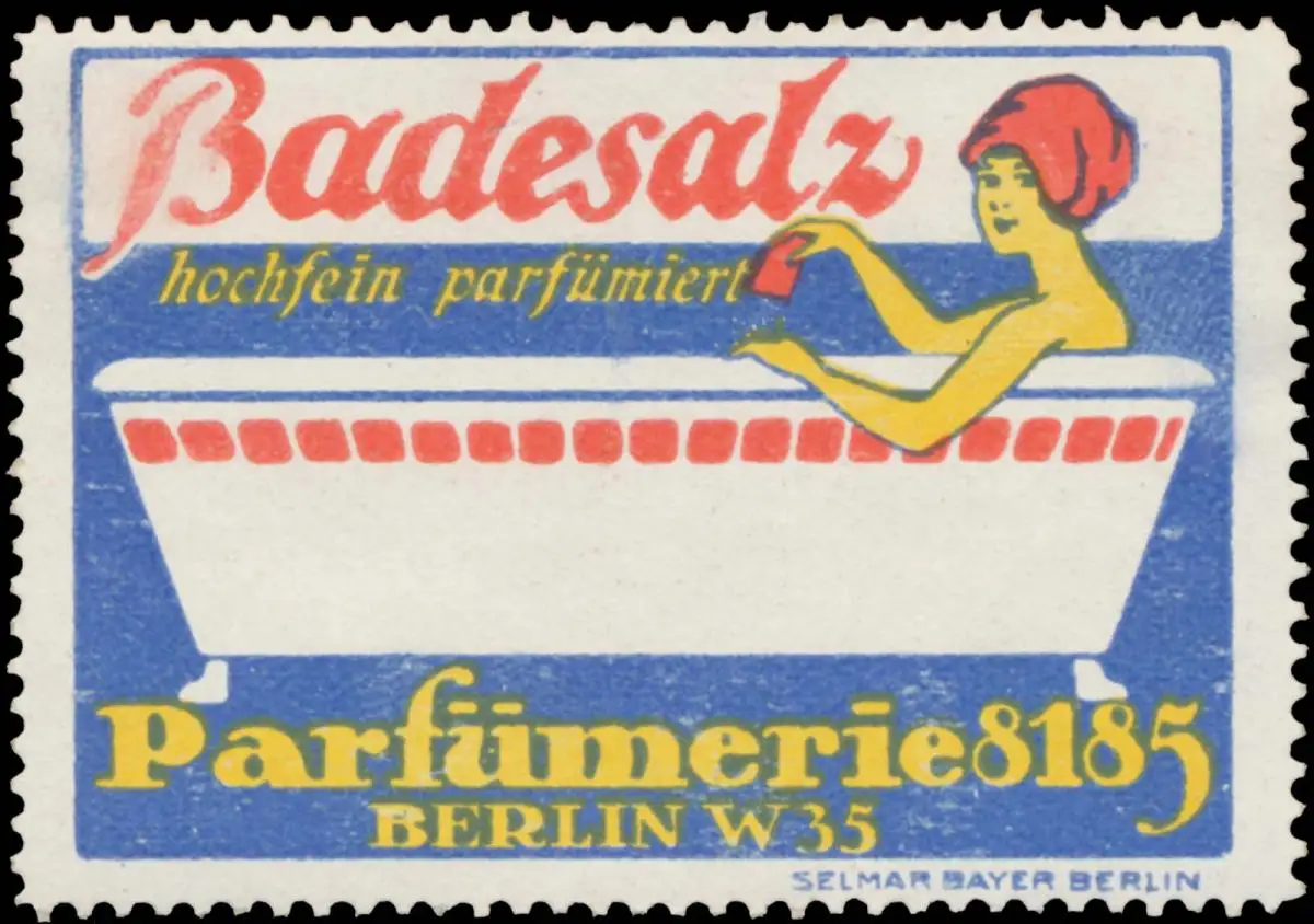 Frau in Badewanne, Druck: Selmar Bayer, Berlin, Größe/Zustand: 4x8 , guter Zustand, Original alte Reklamemarke die seinerzeit für die Werbung benutzt wurde