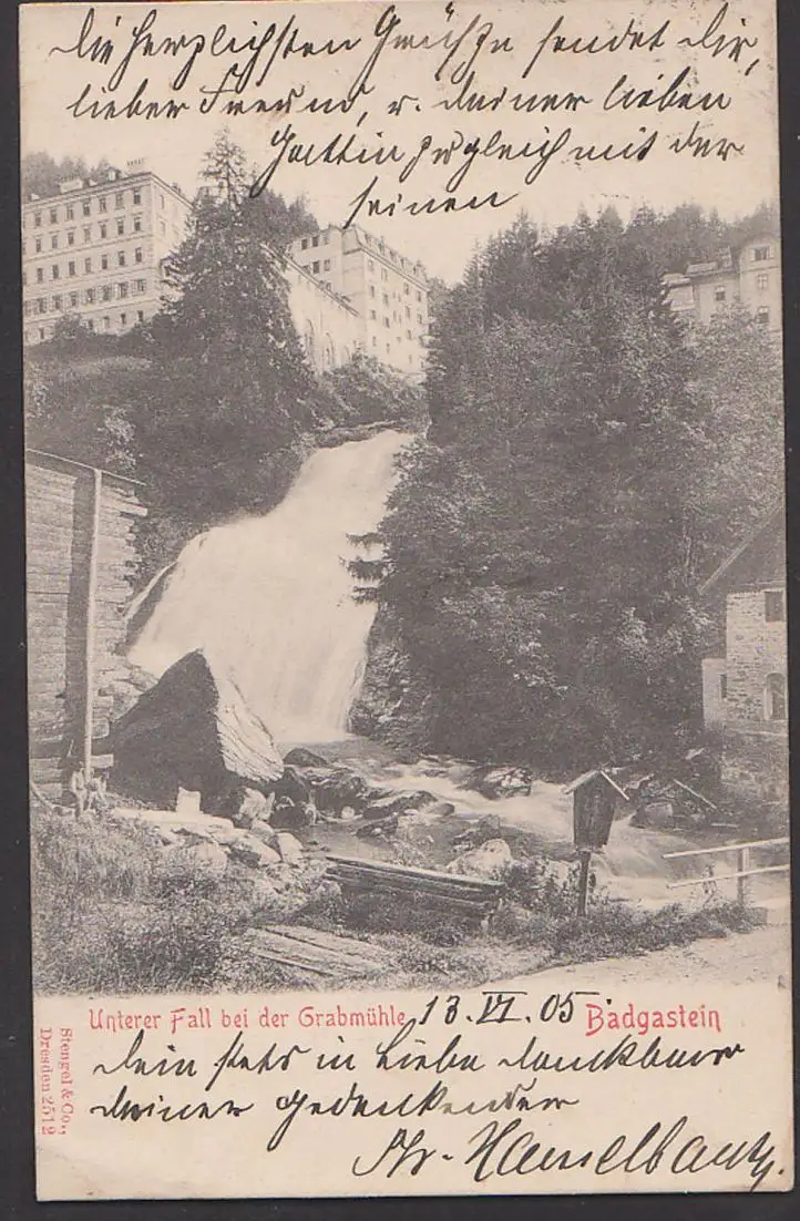Badgastein Bad Gastein Unterer Fall bei der Grabmühle 1905