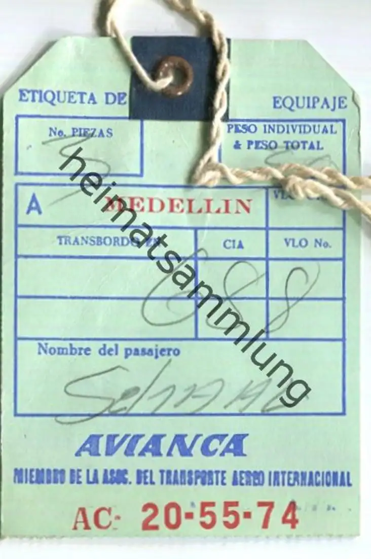 Baggage strap tag - Gepäckanhänger - Avianca Bogota Medellin