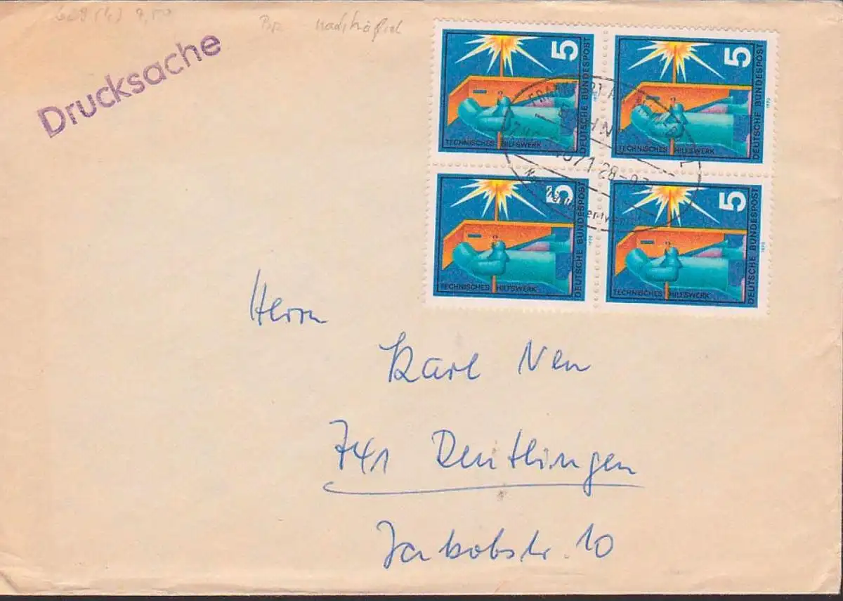 Bahnpost Frankfurt am Main - Basel mit "nachträglich entwertet" Drucksache mit Mi 629(4)