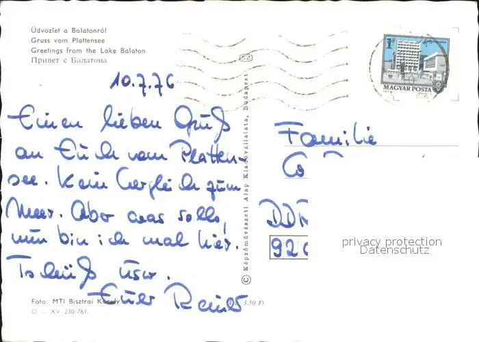 Balaton Plattensee Wasserski Ungarn postalisch gelaufen 1975 Erhaltung siehe scans [LiesaD40] LiesID40