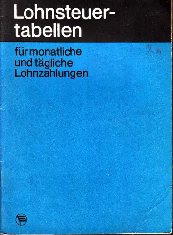 die Seiten sind altersbedingt gebräunt, Kantenbestoßungen, Namenseintrag, aus dem Inhalt: Steuerpflichtiges Einkommen - Steuerfreie Einnahmen - Einstufung in die Steuerklassen - Gewährung eines Steuerfreibetrages wegen erhöhter berufsbedingter Ausgaben bei Fernstudenten - Berücksichtigung steuerfreier Beträge durch die Betriebe - Besteuerung bei mehreren Arbeitsrechtsverhältnissen - Lohnnachzahlungen - Rückwirkende Gewährung von Steuerermäßigungen - Anwendung der Lohnsteuertabellen - Besonderheiten nach Einführung der durchgängigen 5-Tage-Arbeitswoche - Steuertabelle für monatliche Lohnzahlungen [gültig ab 1. November 1953) - Steuertabelle für tägliche Lohnzahlungen - 5-Tage-Arbeitswoche - (gültig ab 1. September 1967) - Steuertabelle für tägliche Lohnzahlungen - 6-Tage-Arbeitswoche -(gültig ab 1. November 1953) Beschreibung vom Antiquariat Ardelt 4n3a Antiquariat Ardelt
