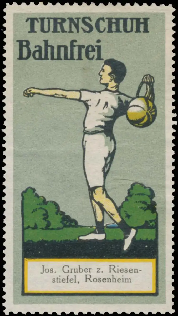 Turnschuh Bahnfrei, Riesenstiefel, Schuhe, Sport, Größe/Zustand: 7x4 , guter Zustand, Original alte Reklamemarke die seinerzeit für die Werbung benutzt wurde