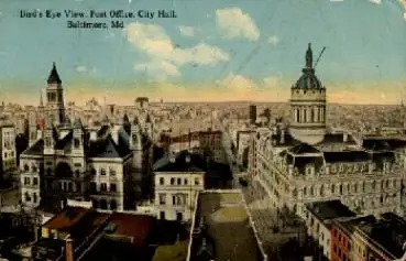 Baltimore Maryland Birds Eye View Post Office City Hall Post o 18.11.1913