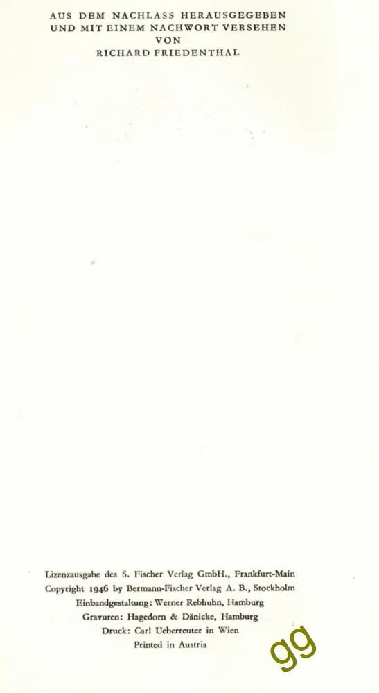 Copyright 1946 by Bermann-Fischer Verlag A.B-. Stockholm