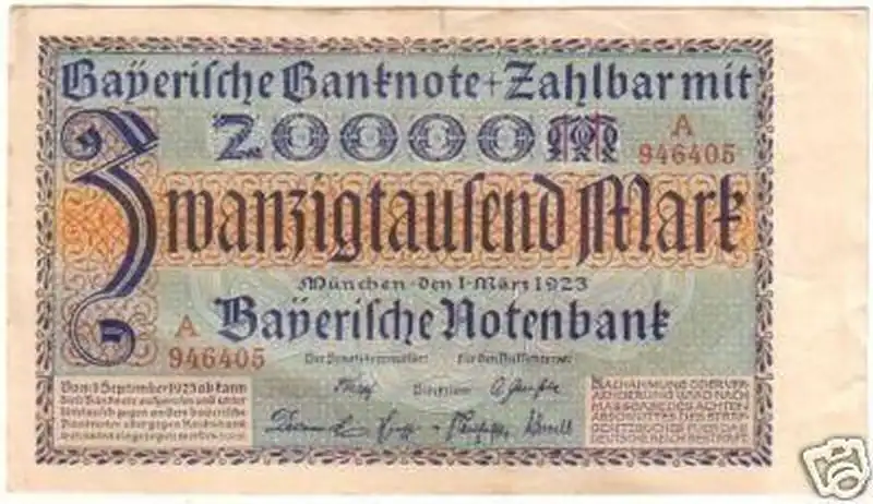 20000 Mark 1.März 1923 Bayerische Notenbank München, gebrauchte Erhaltung siehe Bild,