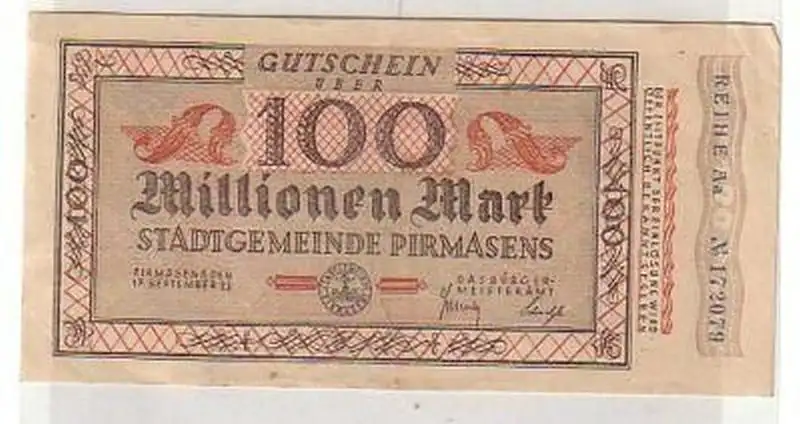 Banknote 100 Millionen Mark 17.September 1923, gebrauchte Erhaltung siehe Bild,
