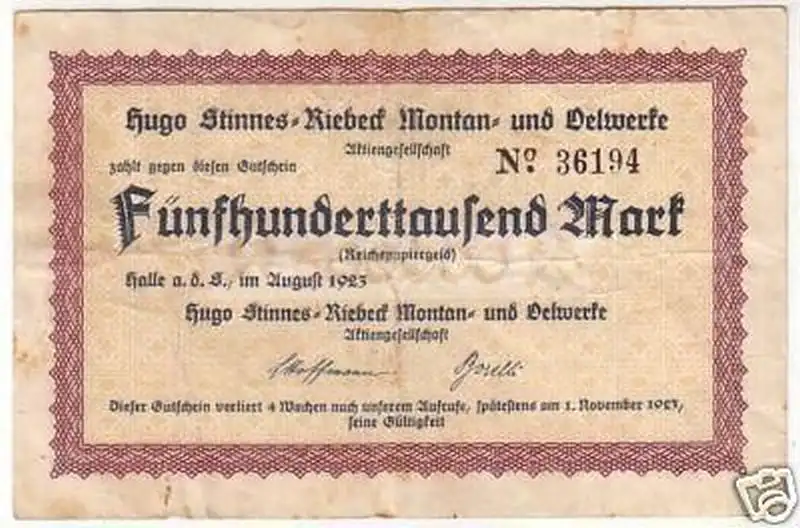 Hugo Stinnes Riebeck Montan- und Oelwerke AG., gebrauchte Erhaltung siehe Bild,