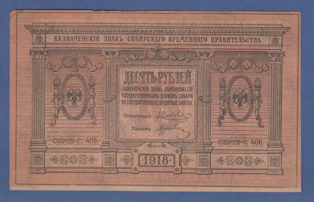 Banknote Russland Sibirien 10 Rubel 1918