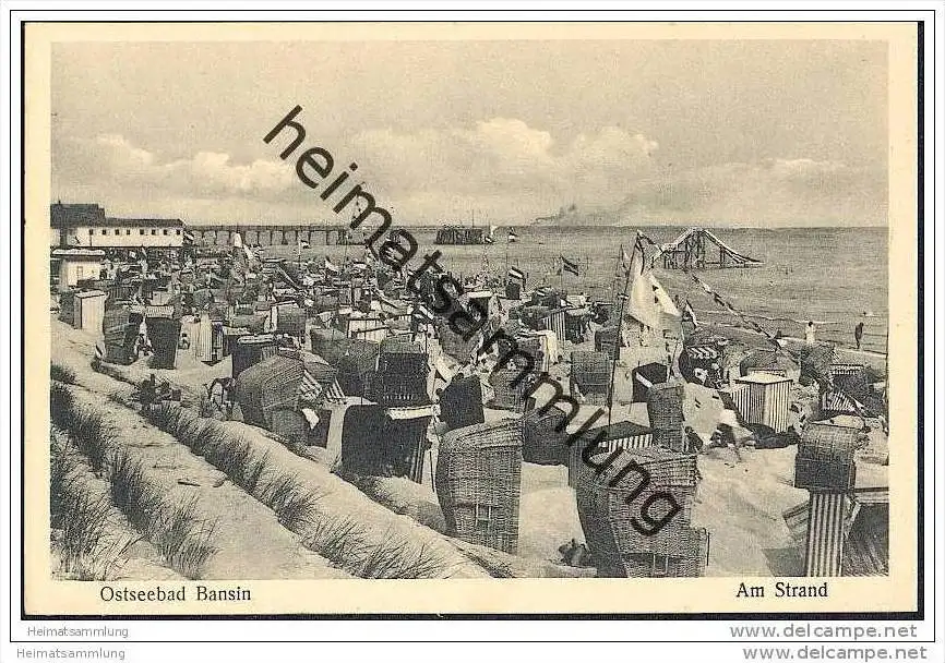 Bansin auf Usedom - Am Strand - Verlag E. Rubin & Co. Lübeck 30er Jahre - rückseitig zwei Klebepunkte (G18735) *