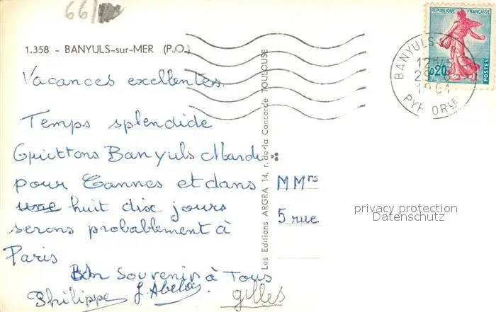 Banyuls-sur-Mer Panorama Banyuls-sur-Mer postalisch gelaufen 1961 Erhaltung siehe scans [FriedD77] Frierer