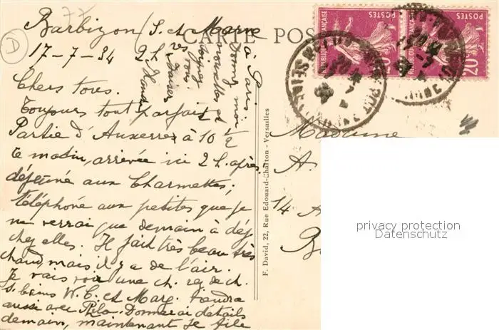 Barbizon Hotel Les Charmettes Barbizon postalisch gelaufen 1934 Erhaltung siehe scans [WerneD78] WernPID7