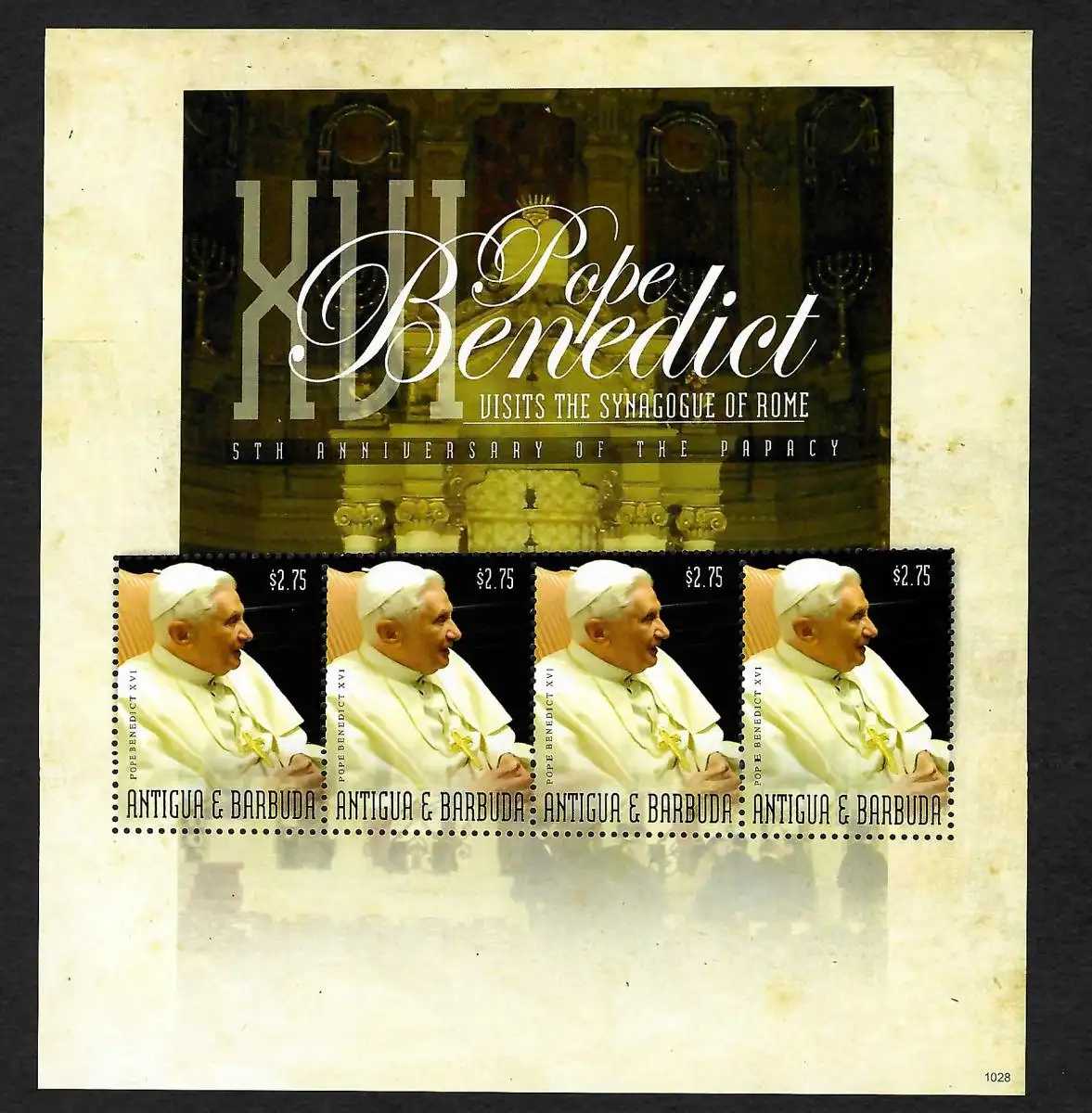 Barbuda: Papst Bendedict XVI, Visit of the Synagogue of Rome, Block, postfrisch