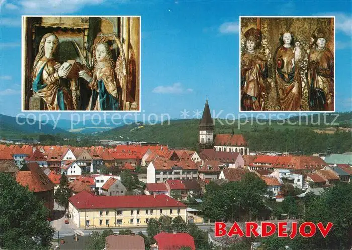 Bardejov Plastiky z kostola sv. Egidia Muzeum Skulpturen Ansicht mit Kirche Bardejov postalisch nicht gelaufen nach 1965 Erhaltung siehe scans [FriedD77] Frierer