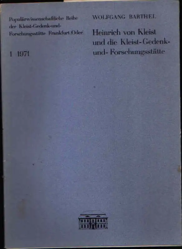 Heinrich von Kleist und die Kleist-Gedenk- und Forschungsstätte; Wolfgang Barthel; Sprachwissenschaft; Literaturwissenschaft