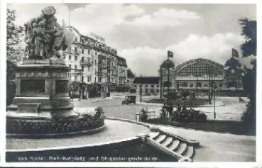 Basel Bahnhofplatz und Strassburgerdenkmal * ca. 1920