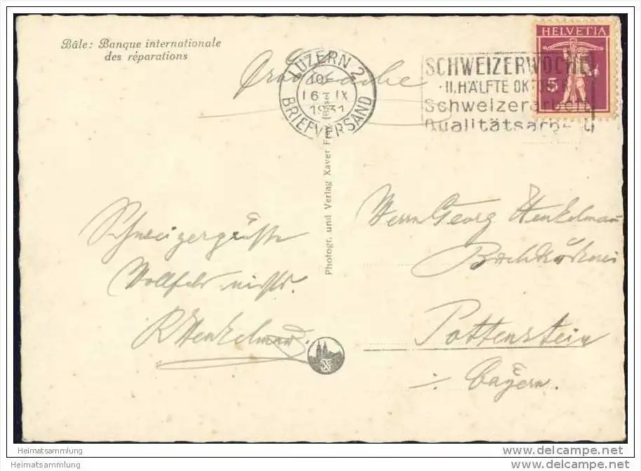 Basel - Internationale Reparationsbank - Foto-AK Grossformat - Verlag Xaver Frey Basel (G22048) gel. 1931