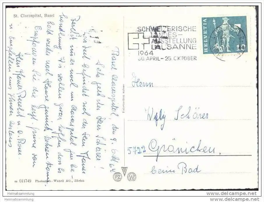 Basel - St. Claraspital - Foto-AK Grossformat - Verlag Photoglob-Wehrli Zürich (E30111) gel. 1964