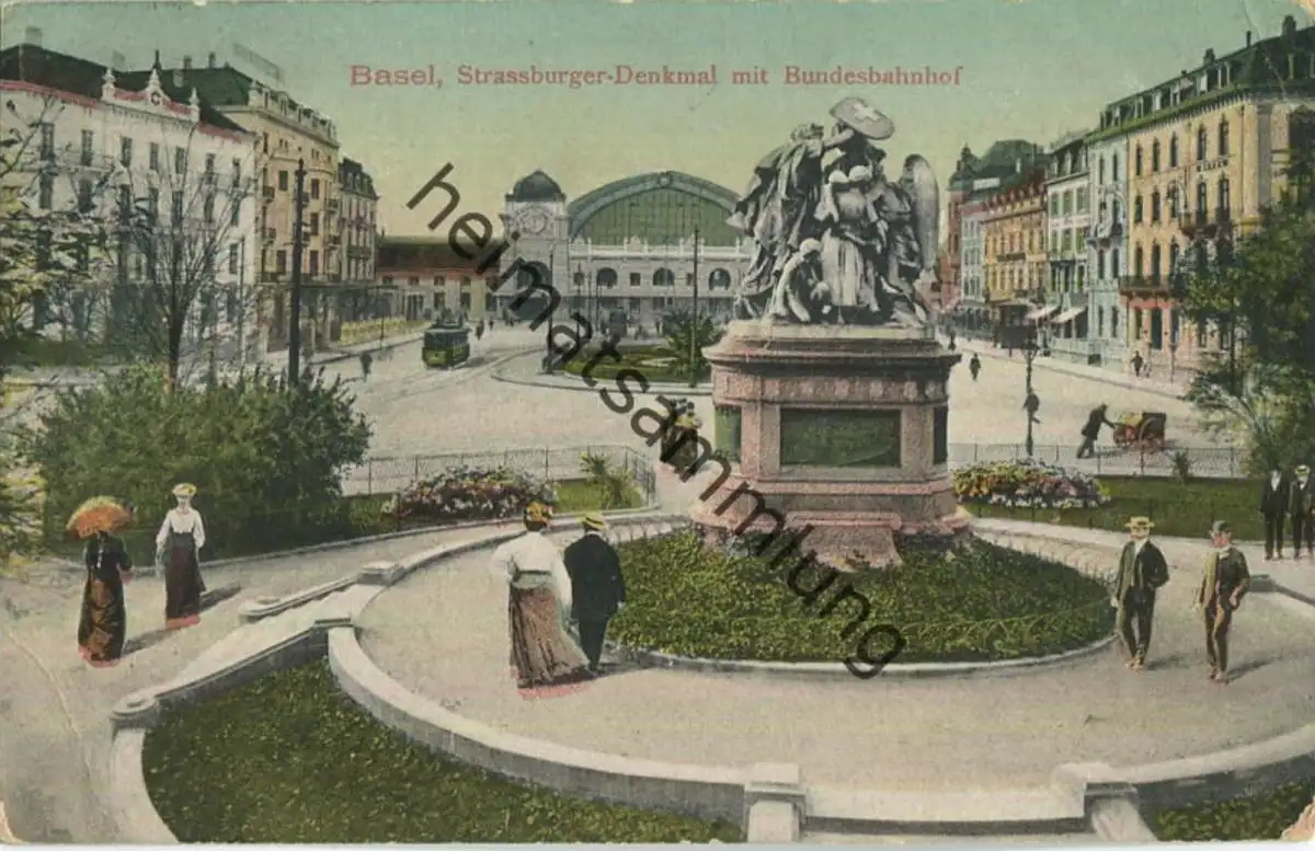 Basel - Strassburger-Denkmal mit Bundesbahnhof - Verlag G. Metz Basel
