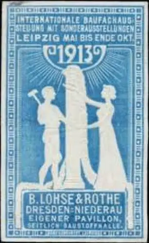Internationale Baufachausstellung, Leipzig, Größe/Zustand: 7x4 , leicht fleckig, Original alte Reklamemarke die seinerzeit für die Werbung benutzt wurde