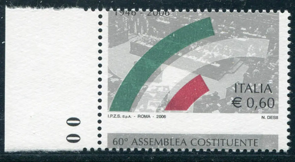 Baugruppe Varietät verschobene Verzahnung Vollgummi - MHN - - Verfassungsgebende Versammlung Nr. 2913 stark verschobene horizontale Verzahnung mit Schriftzug 60. Verfassungsgebende Versammlung unten statt oben - Ungewöhnlich, unterboten Cod. 901/14