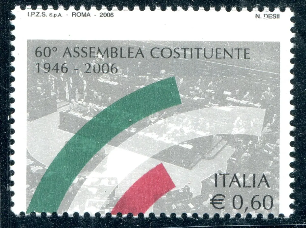 Vollgummi MNH - 60. Jubiläum Verfassungsgebende Versammlung schönes Exemplar mit der horizontalen Verzahnung, die so weit verschoben ist wie die Aufschrift I.P.Z.S. oben statt unten - Ungewöhnlich Cod. 323/WEB