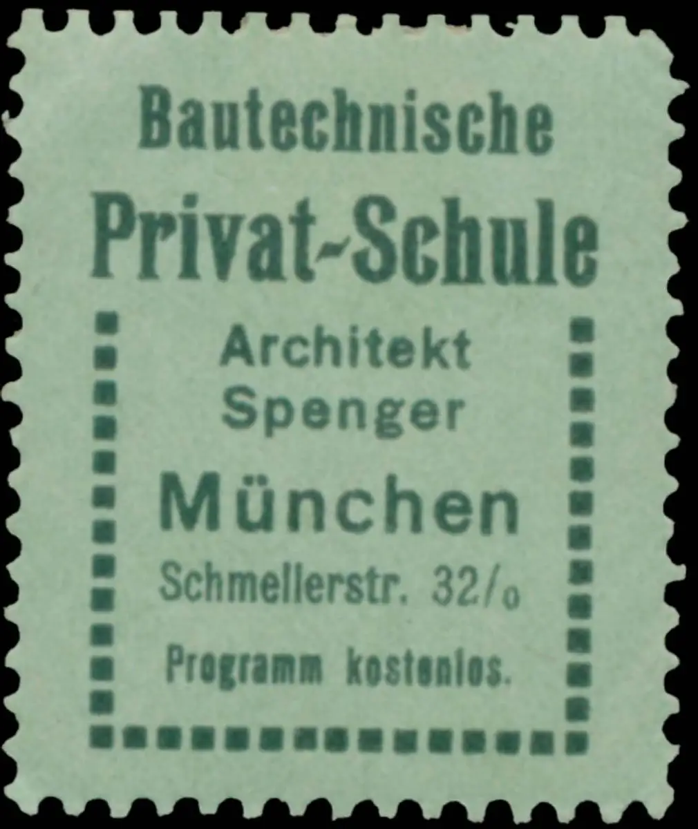 Privat-Schule, Architekt Spenger, Schmellerstraße 32, Größe/Zustand: 2x2 , guter Zustand, Original alte Reklamemarke die seinerzeit für die Werbung benutzt wurde