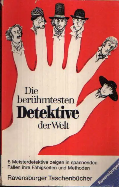 Bautze, Hanna; Die berühmtesten Detektive der Welt; Sechs Kriminalfälle; Zeichnungen von Rolf Rettich; C. August Dupin- Edgar Allan Poe: Der entwendete Brief; Sherlock Holmes- Arthur Conan Doyle: Die drei Garridebs; Pater Brown- Gilbert K. Chesterton: Die Sternschnuppen; Lord Peter Wimsey- Dorothy Sayers: Onkel Meleagers Testament; Mr. Reeder- Edgar Wallace: Polizei und Poesie; Hercule Poirot- Agatha Christie: Der Nemeische Löwe; Über die Autoren; Krimi; Kriminalroman; Spannend; Spannung