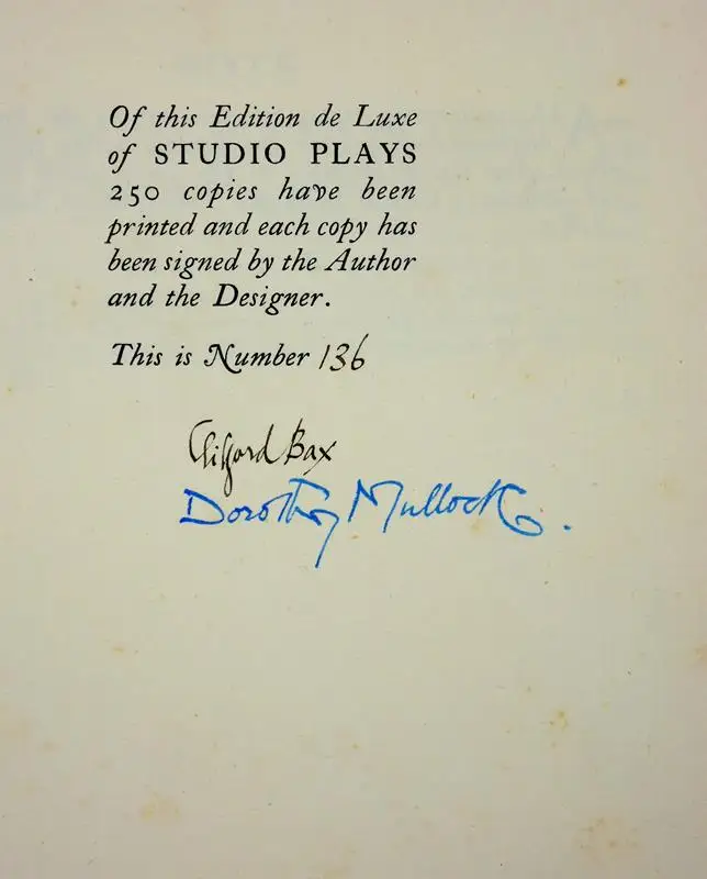 Bax, Clifford: Studio plays. Three experiments in dramatic form. With designs for costumes and one scene by Dorothy Mullock.