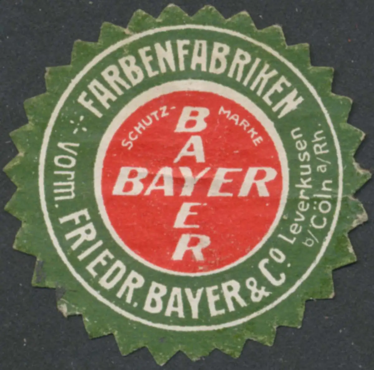 vormals Friedrich Bayer & Co., Größe/Zustand: 3 , leicht beschädigt, Original alte Reklamemarke die seinerzeit für die Werbung benutzt wurde