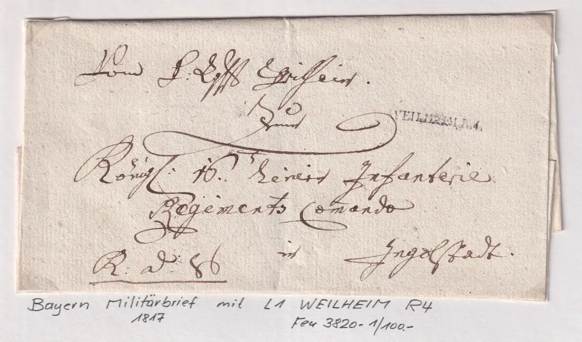 Bayern 1817 Vorphila-Brief mit Einzeiler WEILHEIM.R.4.