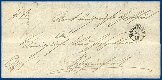 Bayern 1838, Fingerhut Stpl. HASSFURTH auf Brief n. Schweinfurt.
