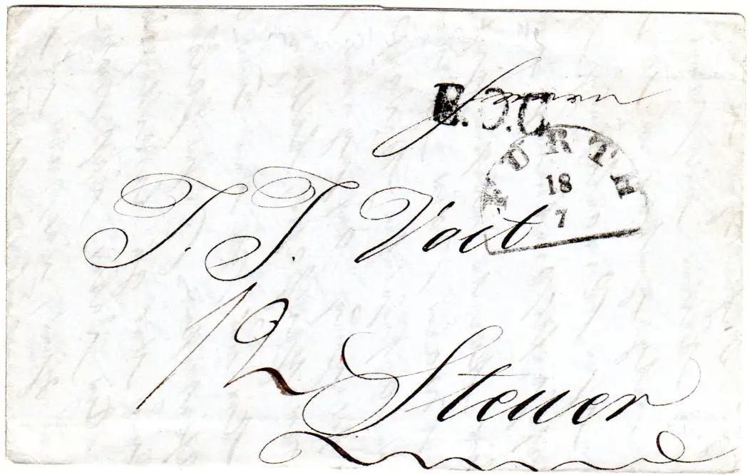 Bayern 1846, HKS Fürth u. B.O.C. auf Brief n. Steyr Österreich.
