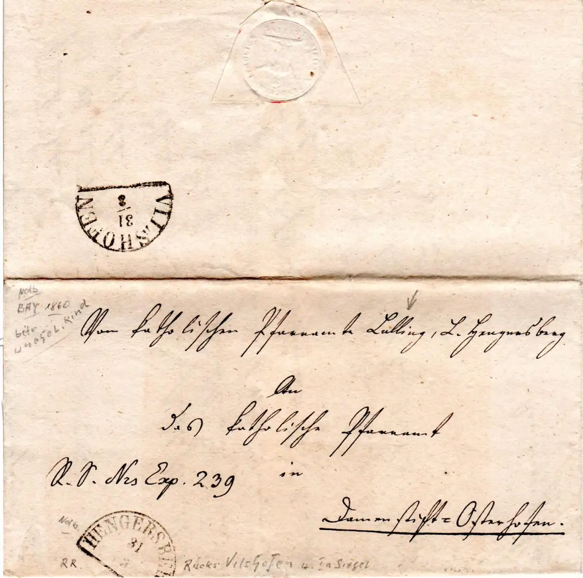 Bayern 1863, HKS Hengersberg auf Brief v. Lalling n. Osterhofen