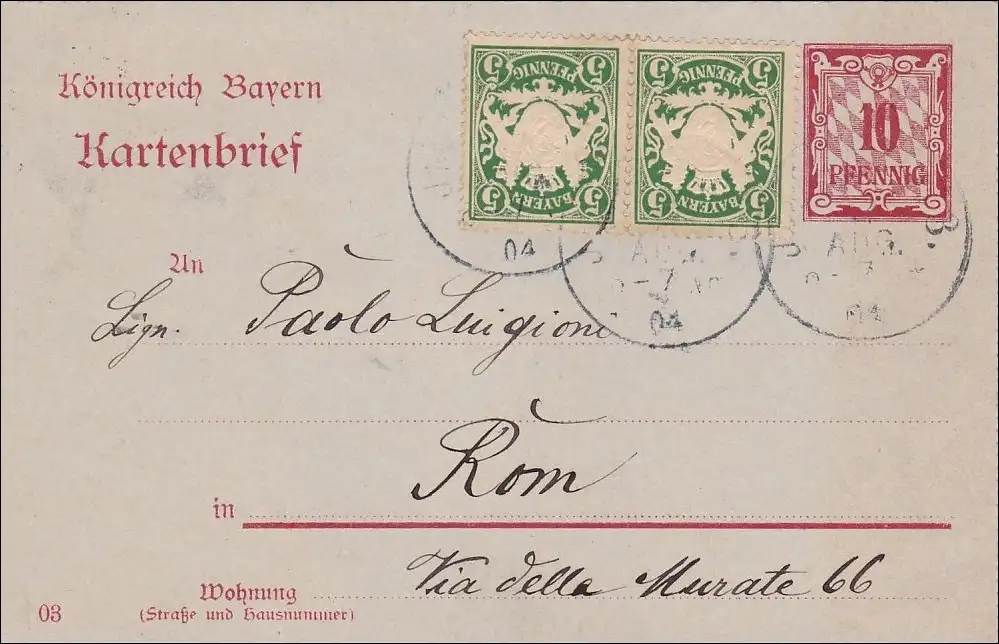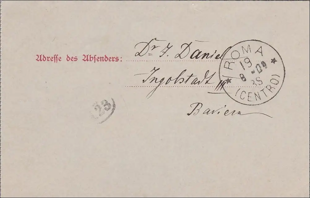 Bayern: 1904: Kartenbrief von Ingoldstadt nach Roma
