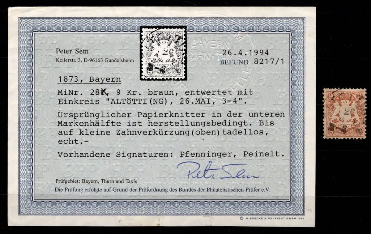 Bayern 28 X gestempelt Befund Sem BPP #OF047