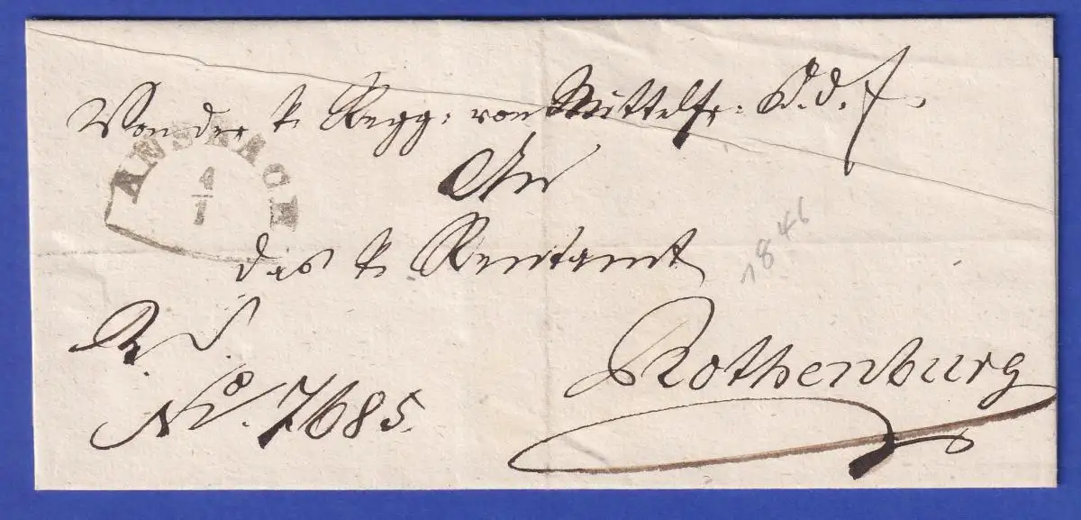 Bayern Dienstbrief mit Halbkreis-Stempel ANSBACH 1846